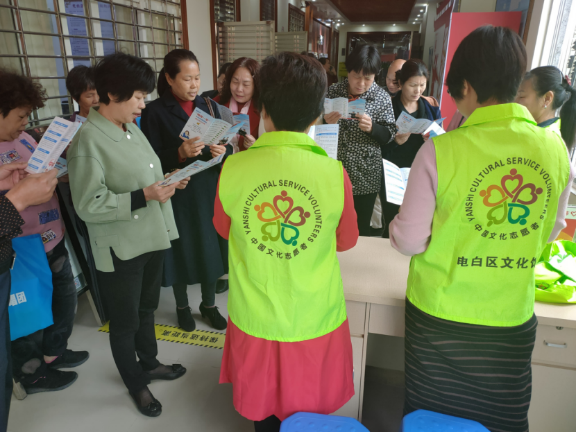 2021年3月23日上午, 为了进一步营造“两度一率”宣传工作浓厚范围,不断提升群众对社会治安满意度、对政法工作满意度、对平安建设工作的知晓率,电白区文化馆认真贯彻落实区委宣传部、区政法委2021年“两度一率”宣传工作方案的部署,紧紧围绕八大宣传重点,认真做好我馆“两度一率”宣传工作。本次活动共有80余名群众参加,发放“平安法制宣传册” 80余份,到会的群众现场进行交流学习,本次活动提高了群众 “两度一率”知识的知晓率。