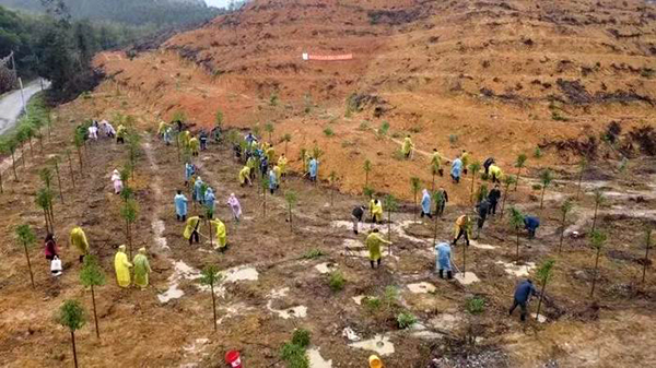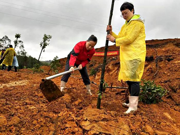 活动现场,一片热火朝天,大家手持铁锹、挥舞锄头,挖土填坑、围垅浇水,以实际行动践行“绿水青山就是金山银山”的发展理念。此次活动共成功栽种樟树乔木约200株。