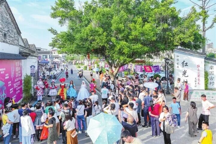 今年五一假期,东源县仙塘镇红光村南园古村举办文化艺术节,吸引众多游客前来。