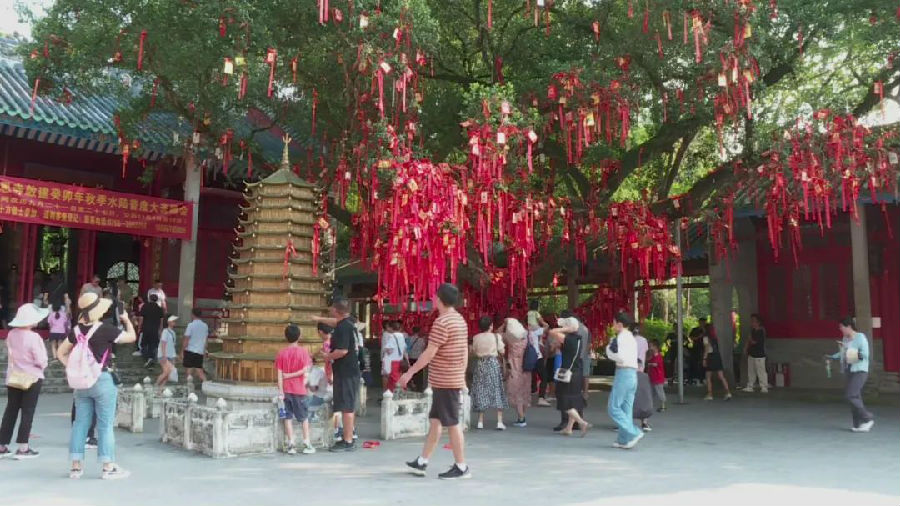 “针对这次国庆节、中秋节的双节假期,我们景区一是制定了切实可行的措施,确保游客出行的安全,第二是提升了园区的服务质量,确保游客在参观园区和入住酒店都能够得到一个很好的服务体验,第三是增加了园区的一些新业态,吸引了不少年轻人前来打卡 。”广东禅文化创意产业园区服务中心的工作人员张丽贤表示。