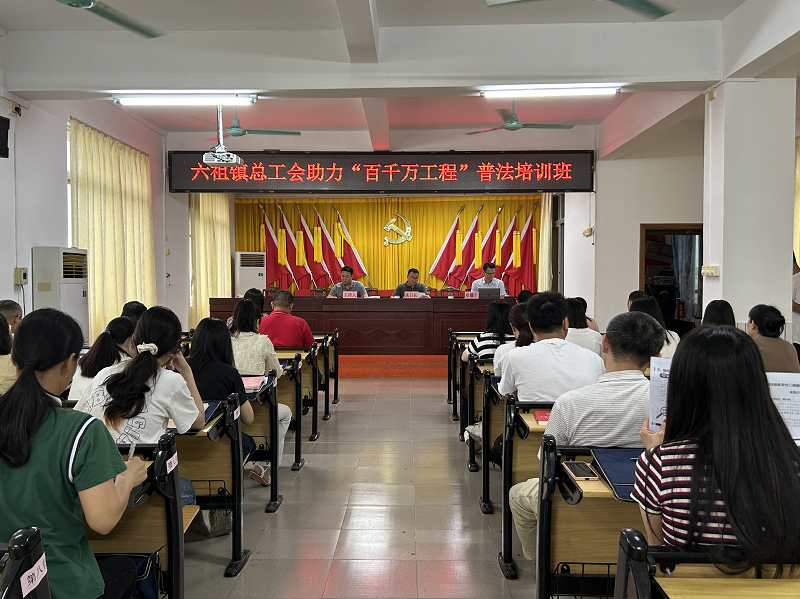 为加强全镇工会会员的法律素养,提升法治意识,引领全镇工会会员积极投身“百千万工程”,5月6日下午,六祖镇总工会在镇政府五楼会议室组织开展六祖镇总工会助力“百千万工程”普法培训班,机关工会会员代表以及各企业工会会员代表共40余人参加培训。
